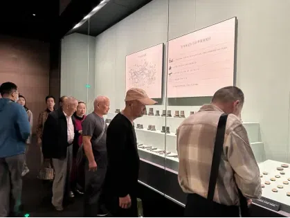 最后老党员们观看了编钟演出。编钟古乐悠扬恢弘,穿越时空的乐音仿佛将大家带回了那个礼乐文明兴盛的时代,进一步增强了文化自信和民族自豪感。