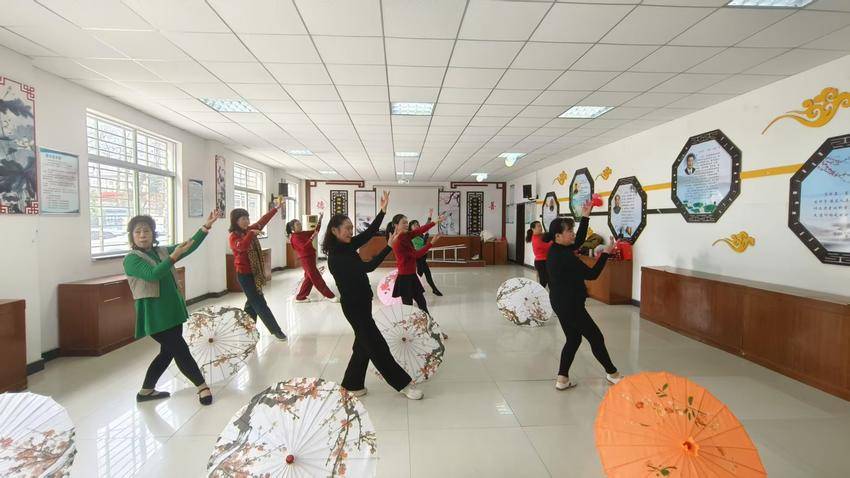 活动中,艺术团老师手持素雅油纸伞领舞,随音乐轻旋慢摆,伞面古典纹样流转韵味,居民们紧随其后模仿,活动室里满是欢声笑语。“下雨天锻炼难,拿着油纸伞跳舞既动了筋骨,还带了些传统文化的韵味,真不错!”居民王阿姨笑着说。