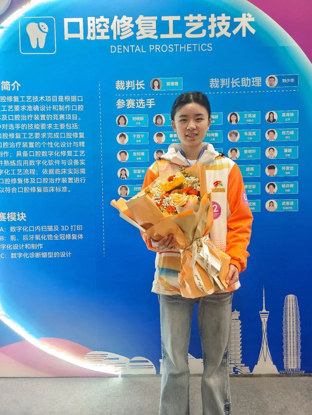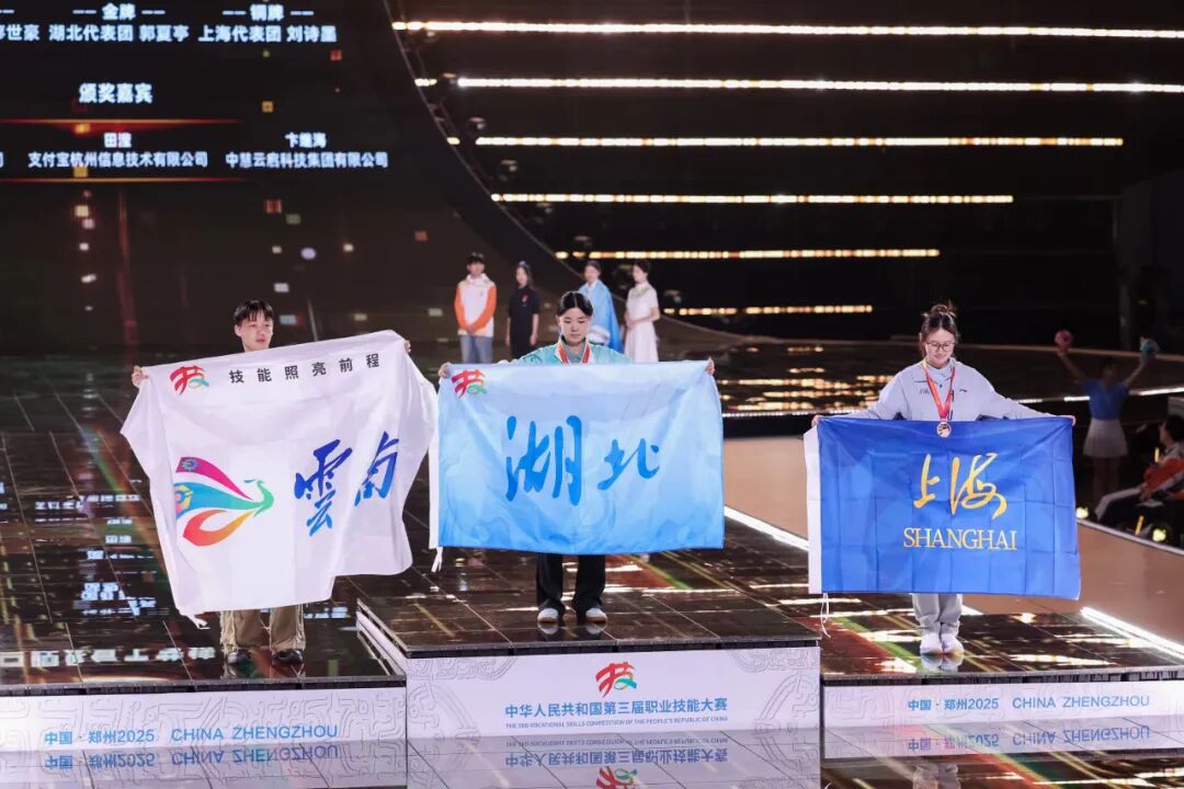 9月23日晚,在位于河南郑州的中华人民共和国第三届职业技能大赛闭幕式上,宜昌选手郭夏亭登台领取口腔修复工艺技术项目金牌。