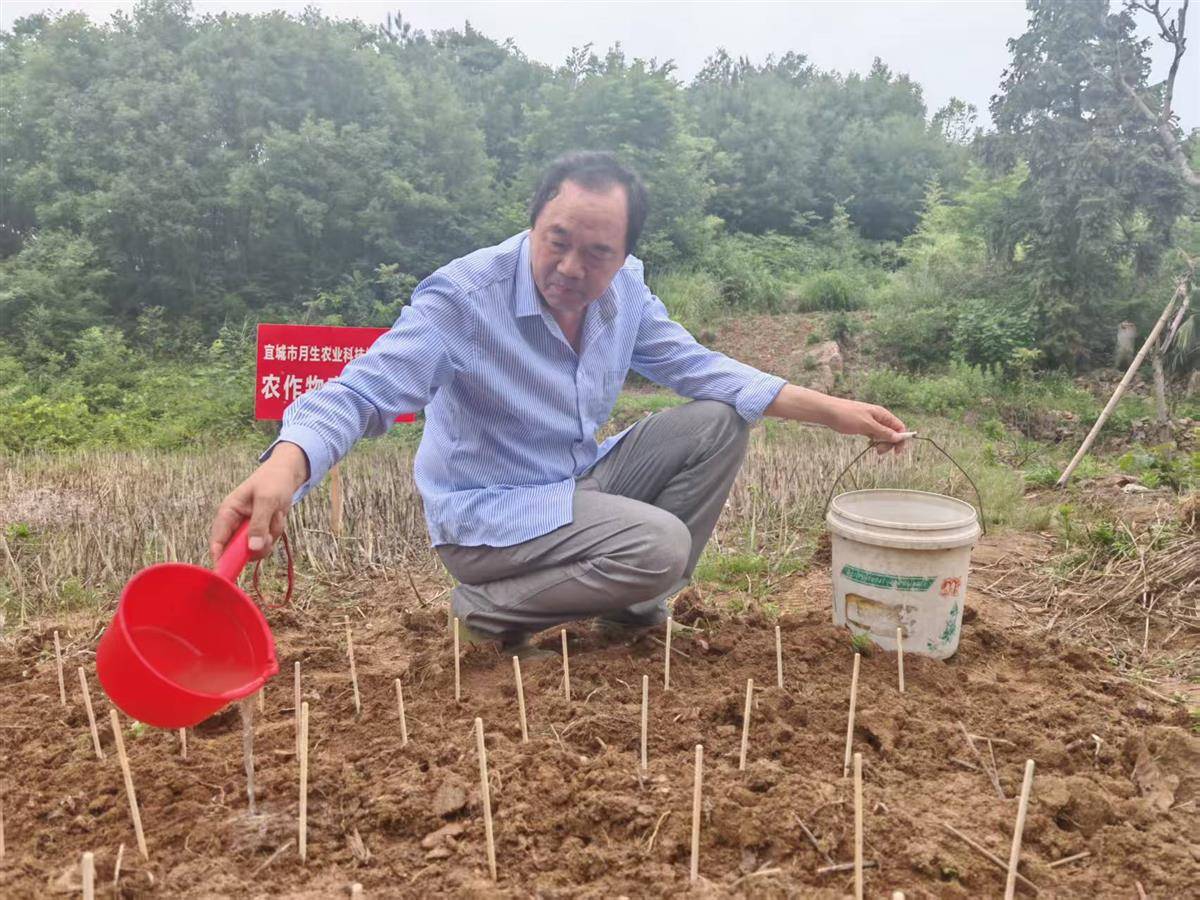 邵继波正在给移栽的小麦苗浇水。(湖北日报全媒记者 刘孝军 摄)
