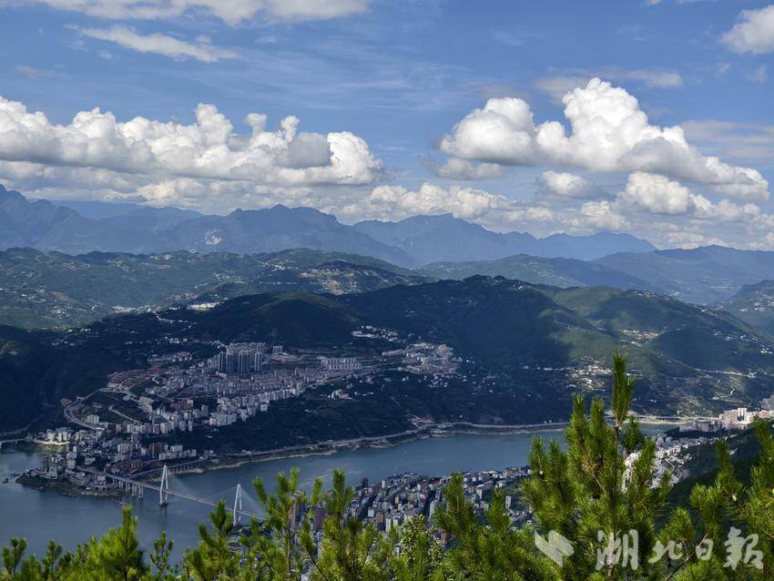站在巫峡之巅,俯瞰整个巴东县城,长江大桥将县城南北两岸连为一体,各种船舶行驶在巫峡碧波之中,宛如画中画!