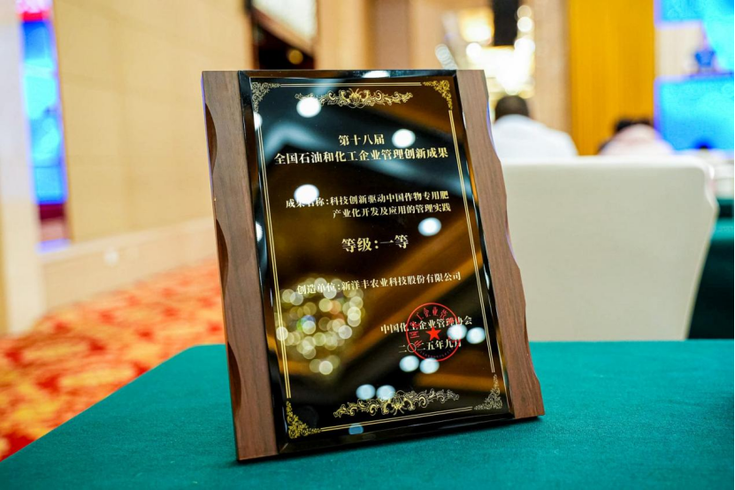 9月25日,以“管理创新驱动发展,数智转型赋能未来”为主题的2025年全国石油和化工企业管理创新大会在北京召开,会上发布2025年度管理创新成果。新洋丰农业科技股份有限公司申报的《科技创新驱动中国作物专用肥产业化开发及应用的管理实践》成果,从全国400余项申报项目中脱颖而出,经过初审、复审和专家评审,荣获企业管理创新成果一等奖,这也是新洋丰连续两年获此殊荣!