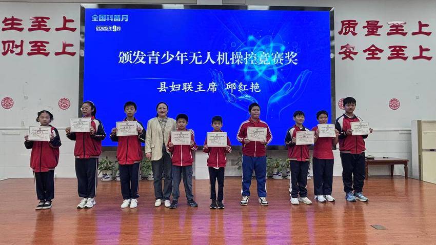 本次大赛历时三个月,经过精心筹备,激烈角逐,评选出青少年科技创新成果、青少年科幻画、无人机操控、优秀指导教师、优秀组织单位等五个类别的奖项,总计128个。与会领导共同为获奖师生及学校颁奖,鼓励同学们珍惜荣誉,再创佳绩。