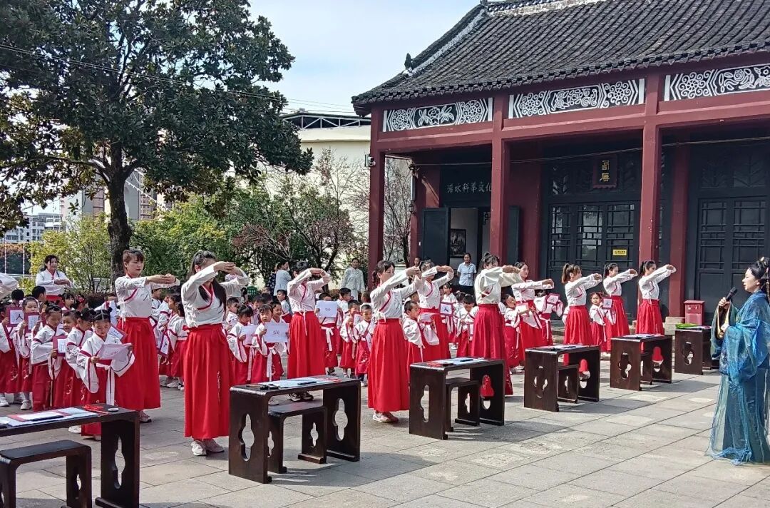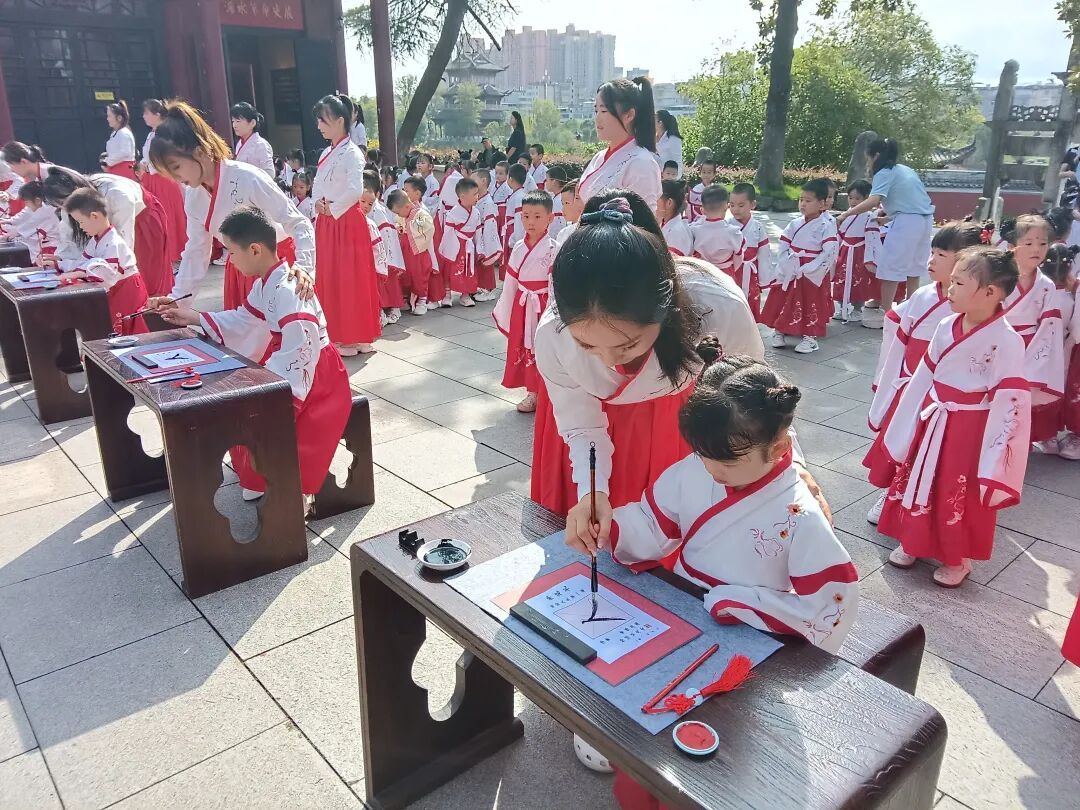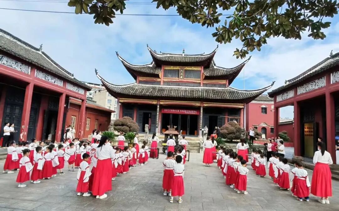 湖北日报客户端讯(通讯员 胡静 万丹 朱一慧)乙巳年仲秋,天高云淡,金风送爽。一场由浠水博物馆与铭威幼儿园联合举办的以“朱砂启智·开笔启蒙”为主题的典礼在浠水文庙举行。学童汉服,师长青衣,礼乐雍容,仪轨煌煌。此礼承周代释菜之古意,融现代教育之精神,以三献之礼敬先师,以朱砂之智启童蒙。