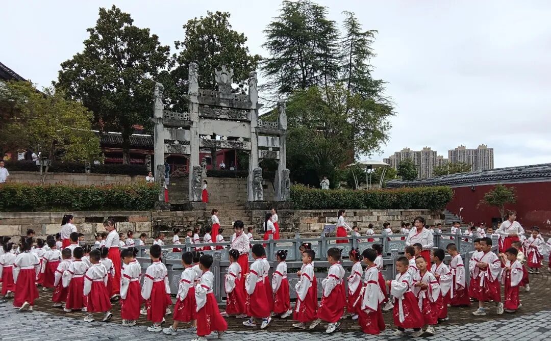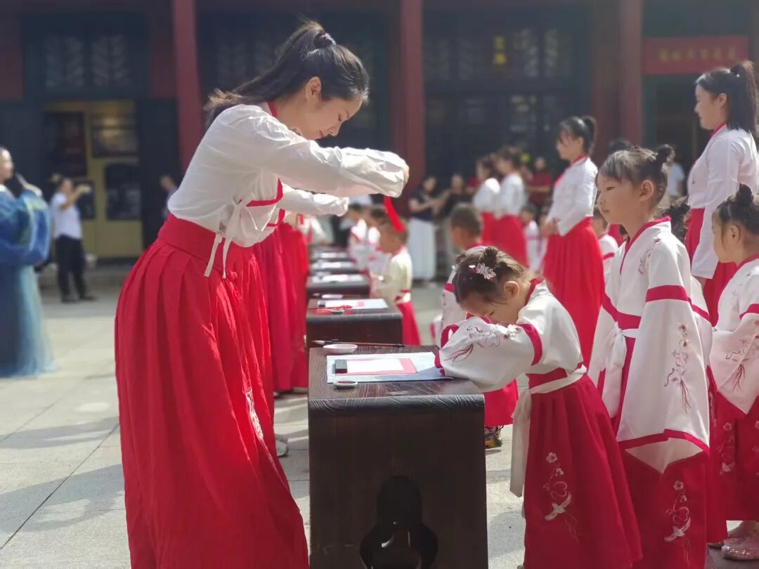 浠水文庙以一场典礼,将地域文脉(闻一多故乡的文教传统)、国家正典(释菜礼制)与个体成长(开笔启蒙)巧妙衔接,使传统文化成为可感、可触、可承的活态传承。朱砂一点,开笔一字,非为造就神童,而在播种文化自信。当学童们带着眉间的朱砂印走出文庙时,他们携走的不仅是知识火种,更是一个民族向历史致敬、向未来开笔的文明宣言。