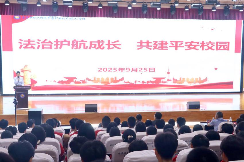聘任仪式结束后,法治副校长黄家波同志为该校全体师生带来了一场生动的法治教育讲座。他紧密结合中职学生的特点,以法律责任年龄为切入点,运用真实案例深入剖析了“校园欺凌”的危害与法律后果。他告诫学生要牢记“勿以恶小而为之”,增强法律意识,勇敢对欺凌行为说“不”。整场讲座内容翔实,学生们认真聆听,现场反响热烈。