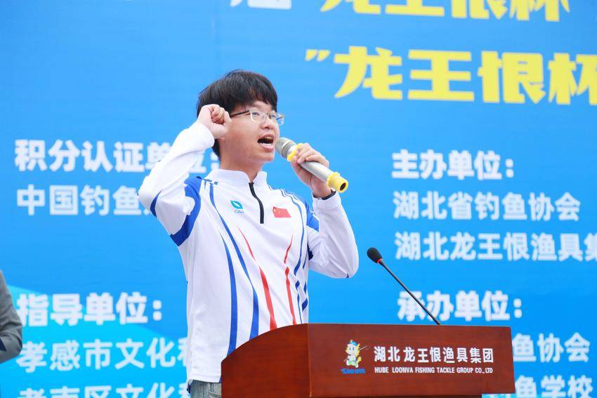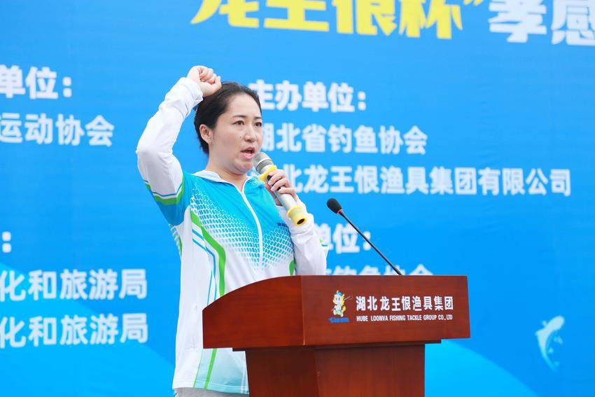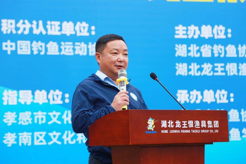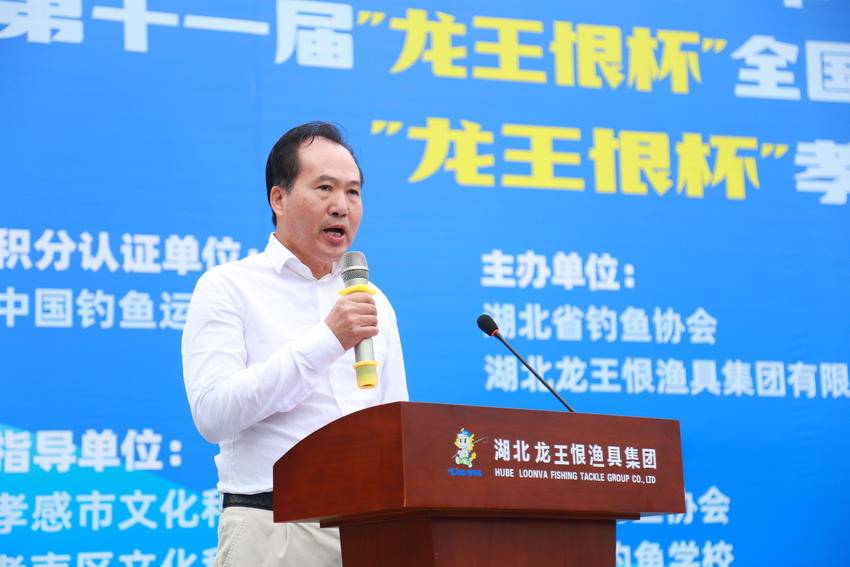 图为湖北省钓鱼协会会长孙全根宣布开赛
