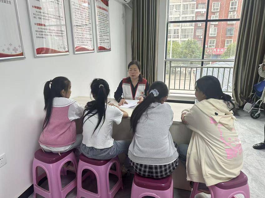 活动伊始,红十字会志愿者代表阐述了关注心理健康的重要性,并介绍了“成长心灵室”项目的初衷与目标,即打造一个安全、信任、开放的空间,让青少年儿童能够探索内心世界,学习心理调适技巧。在专业引导师的带领下,孩子们通过绘画分析、叙事练习等趣味方式,开启自我探索之旅,增进对自身性格、价值观和潜在优势的理解;针对日常生活中常见的情绪困扰,活动设置了情绪认知、压力应对、积极心态培养等环节,教授实用的放松技巧和情绪调节方法,帮助孩子们提升情绪韧性;心理健康知识咨询:红十字会志愿者还设置了咨询台,发放心理健康宣传资料,耐心解答孩子们在家庭生活、学校生活、朋友相处等方面的问题。