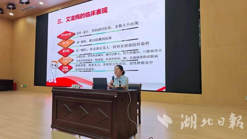 科普讲座环节干货满满。妇女保健科主任汪海华以《健康青春益成长》为题,通过“生理篇 + 防艾篇”的清晰结构,详解艾滋病性接触、血液、母婴三大传播途径,明确“共同进餐、握手等日常接触不会传播”的科学结论;妇科计划生育门诊主任吴红利则聚焦“科学避孕,远离伤害”,从“为何要避孕”“如何选对避孕措施”“意外怀孕如何应对”三大板块,结合PPT 图文深入讲解,还传授性传播疾病自我防护技巧,提醒学生重视定期健康检查。讲座尾声的互动环节,学生们踊跃提问“经期吃短效避孕药安全吗”“避孕器具怎么选才合适”,吴红利逐一耐心回应,现场氛围热烈。
