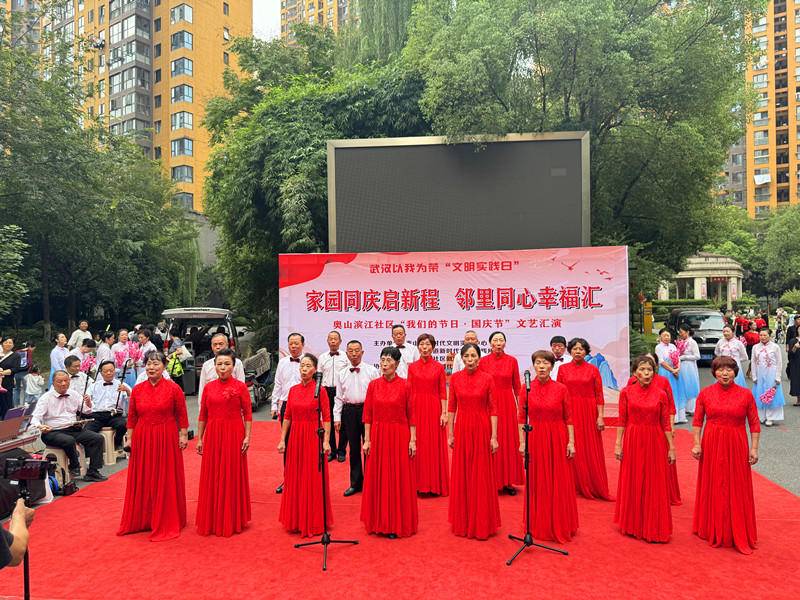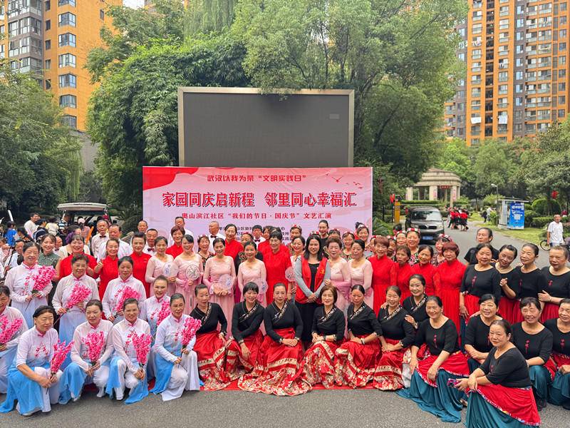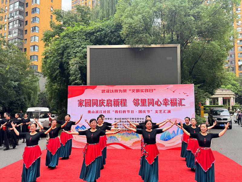 湖北日报客户端(通讯员罗静)秋风送爽,丹桂飘香。在中华人民共和国成立76周年到来之际,为营造喜庆祥和的节日氛围,铸牢中华民族共同体意识,9月27日,武汉市青山区新时代文明实践中心、红卫路街道新时代文明实践所联合奥山滨江、东兴、三弓路等社区新时代文明实践站,共同举办武汉以我为荣之“家园同庆启新程 邻里同心幸福汇”文艺汇演活动。现场300余名党员群众欢聚一堂,载歌载舞礼赞祖国,其乐融融共享美好。