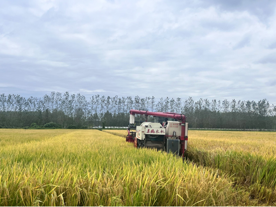 在新台村的稻田里,几台联合收割机轰鸣着穿梭于金黄的稻海。机器所过之处,颗粒饱满的稻穗被“吞”入机身,脱粒、碎秆、卸谷一气呵成,现代化作业场景成为田间最亮眼的“丰收底色”。