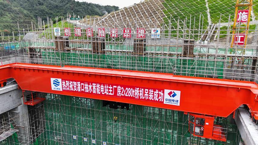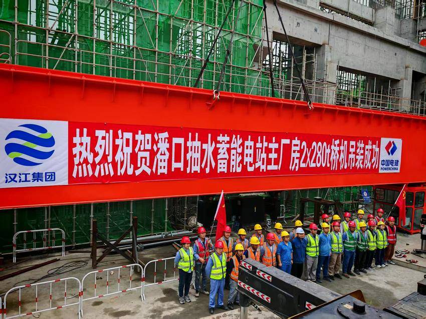 据介绍,电站主厂房桥机在国庆节到来之际成功吊装,不仅是对中国水电五局潘口抽蓄项目全体员工及电站各参建者的精神鼓舞,更是潘口抽蓄电站向首台机组投产发电目标迈进的又一关键之步。