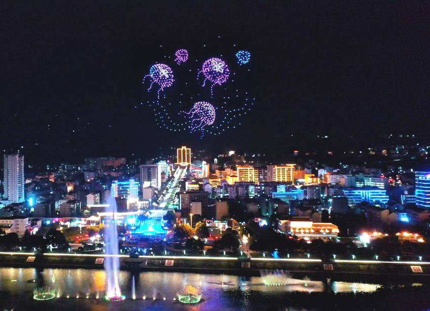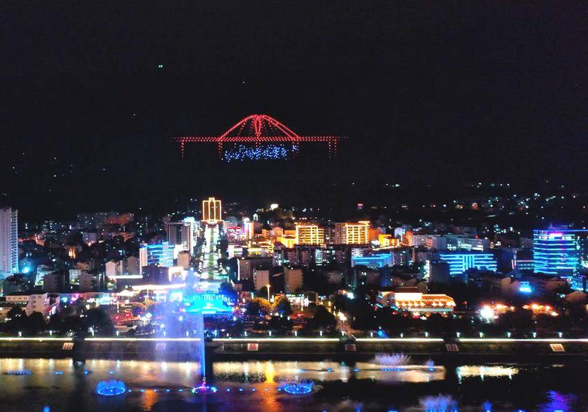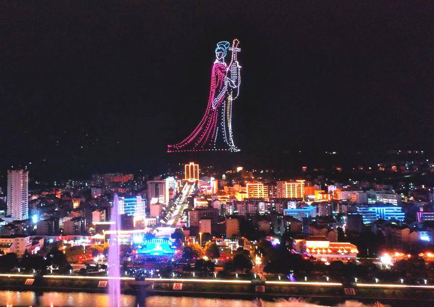 湖北日报客户端讯(通讯员袁选国)9月28日晚,2025年昭君文化旅游节无人机表演在兴山精彩亮相,千架无人机以夜空为幕,演绎一场融合文化与科技的视觉盛宴。
