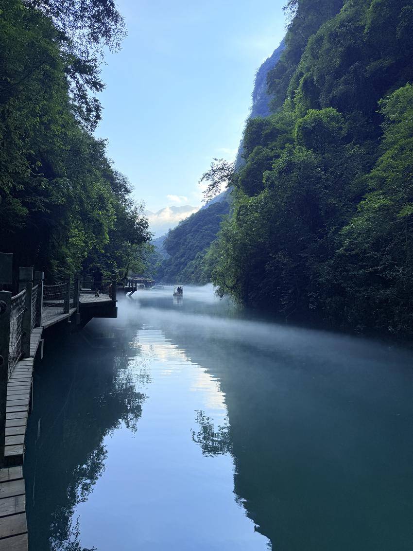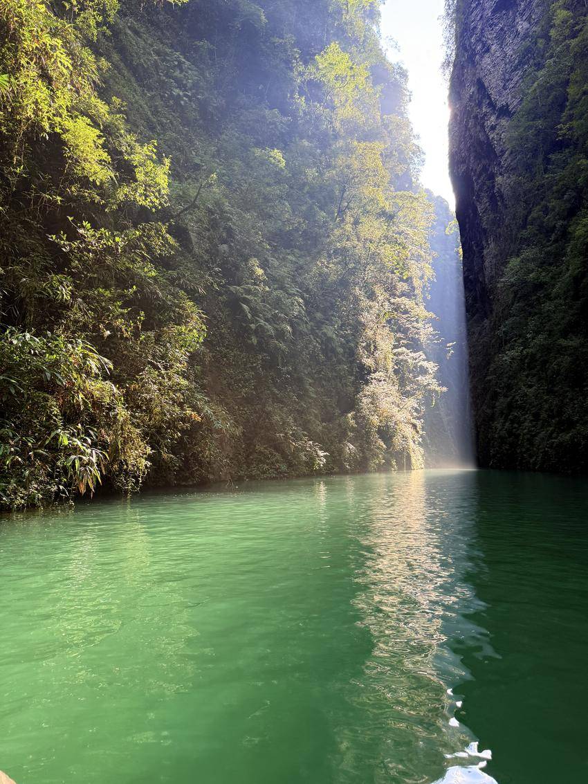 屏山以“峡谷地缝、碧水仙踪”著称,这里植被茂密,水质澄澈如翡翠。乘船穿行于峡谷间,两岸壁立千仞,藤蔓垂挂,光影在水面跳跃,随手一拍皆是山水大片。作为恩施生态旅游的新名片,屏山不仅以绝美风光出圈,更因保留着原始的自然生态,成为人们逃离喧嚣、邂逅自然野趣的秘境。