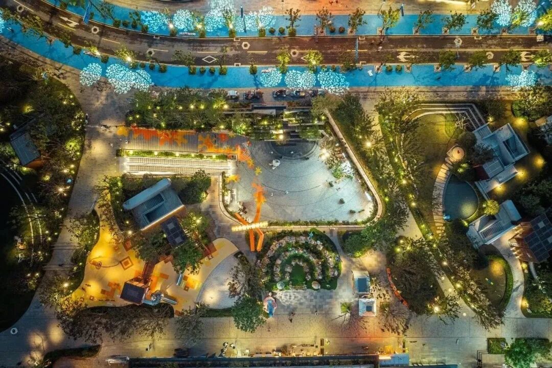 1.3万平方米的公园内规划建设约1000平方米开阔草坪,搭配开放式步道、屋顶花园等立体空间,市民逛商业的同时可随时亲近自然;针对家庭客群,绿地内的儿童乐园设置9大功能游戏区,铺设500平方米防护软垫,既能满足孩子“撒欢”需求,也让家长实现轻松“遛娃”。