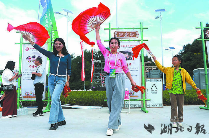 赛场外的非遗体验官闯关区,非遗传承人易建明手持唢呐,一曲经典的《百鸟朝凤》悠扬奏响,引得围观群众阵阵喝彩。9个闯关环节涵盖国家级、省级、县级三个级别非遗项目,各具特色,趣味十足。
