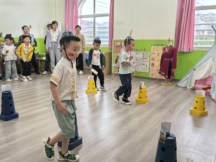 户外民族游戏体验区“多彩民族 快乐体验”更是欢声笑语不断。朝鲜族《投壶》游戏考验孩子们的专注力和手眼协调;蒙古族《顶碗过障碍》挑战平衡能力;壮族《抛绣球》增进团队协作;侗族《踩高跷》则锻炼孩子的勇气和身体协调性。