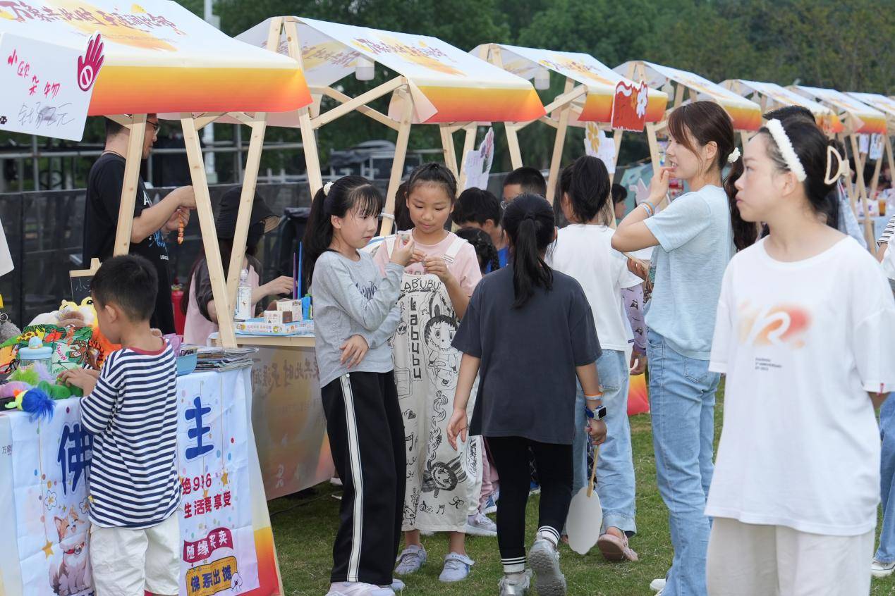 亲子跑的活力未散,烟火市集早已热闹开锣。值得一提的是,现场35个摊位均由业主主动报名参与,从前期创意策划到现场摆摊吆喝,业主全程深度参与。有的业主带来手工饰品、自制美食,有的业主主理特色体验项目,在摊位前热情推介,让市集成为业主共创共享的创意舞台。