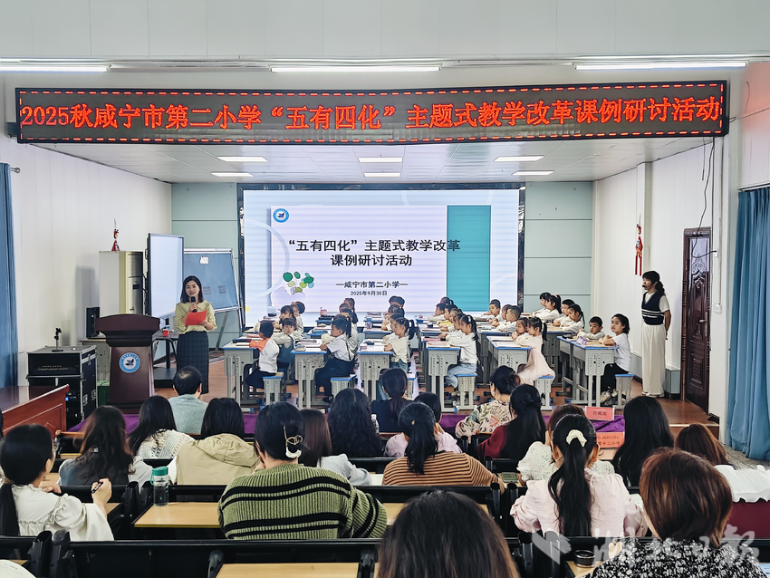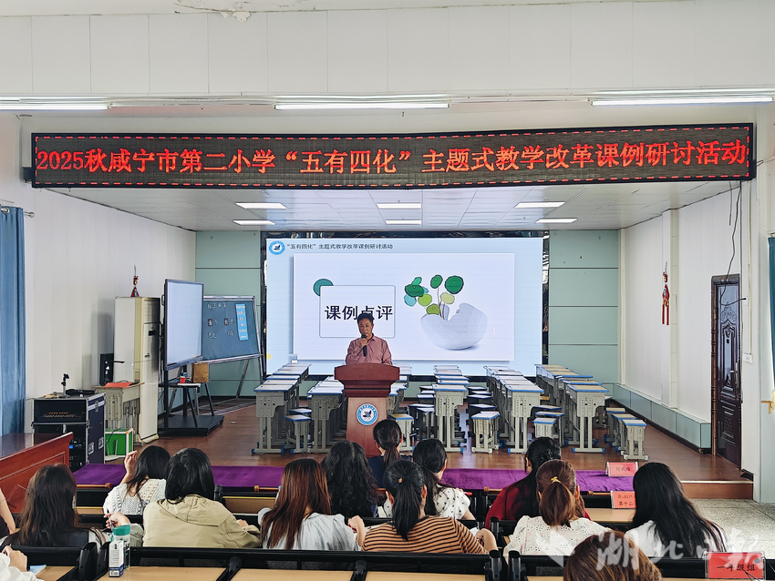 湖北日报客户端讯(通讯员李芳、傅丽萍)9月30日上午,咸宁市第二小学作为咸宁市“五有四化”教学改革实验校,成功举办骨干教师课例研讨活动,特邀教联体学校教师代表70余人参与,共同探讨课堂教学改革新路径,发挥实验校示范引领作用。
