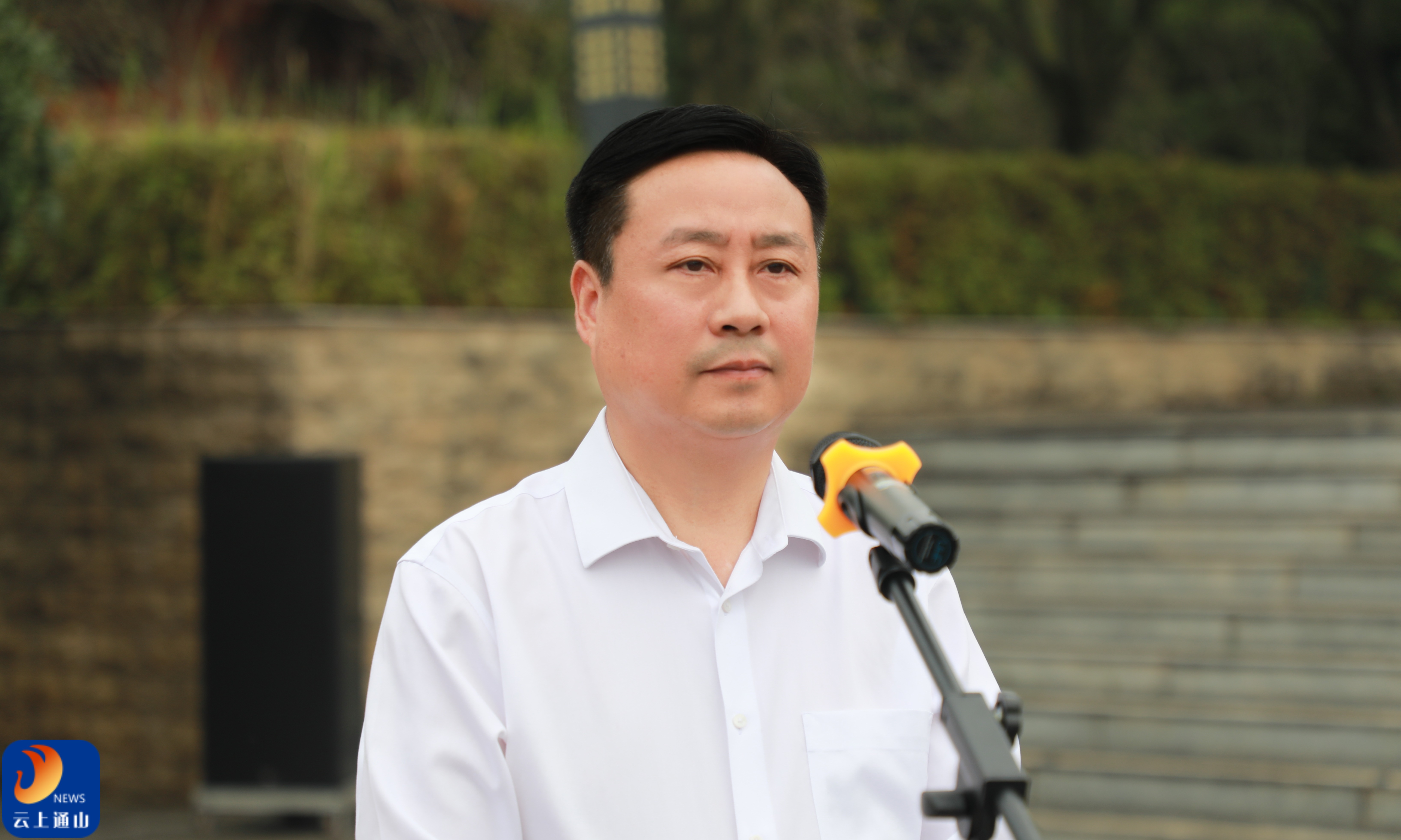 ▲通山县委副书记廖旦主持烈士纪念日公祭活动。