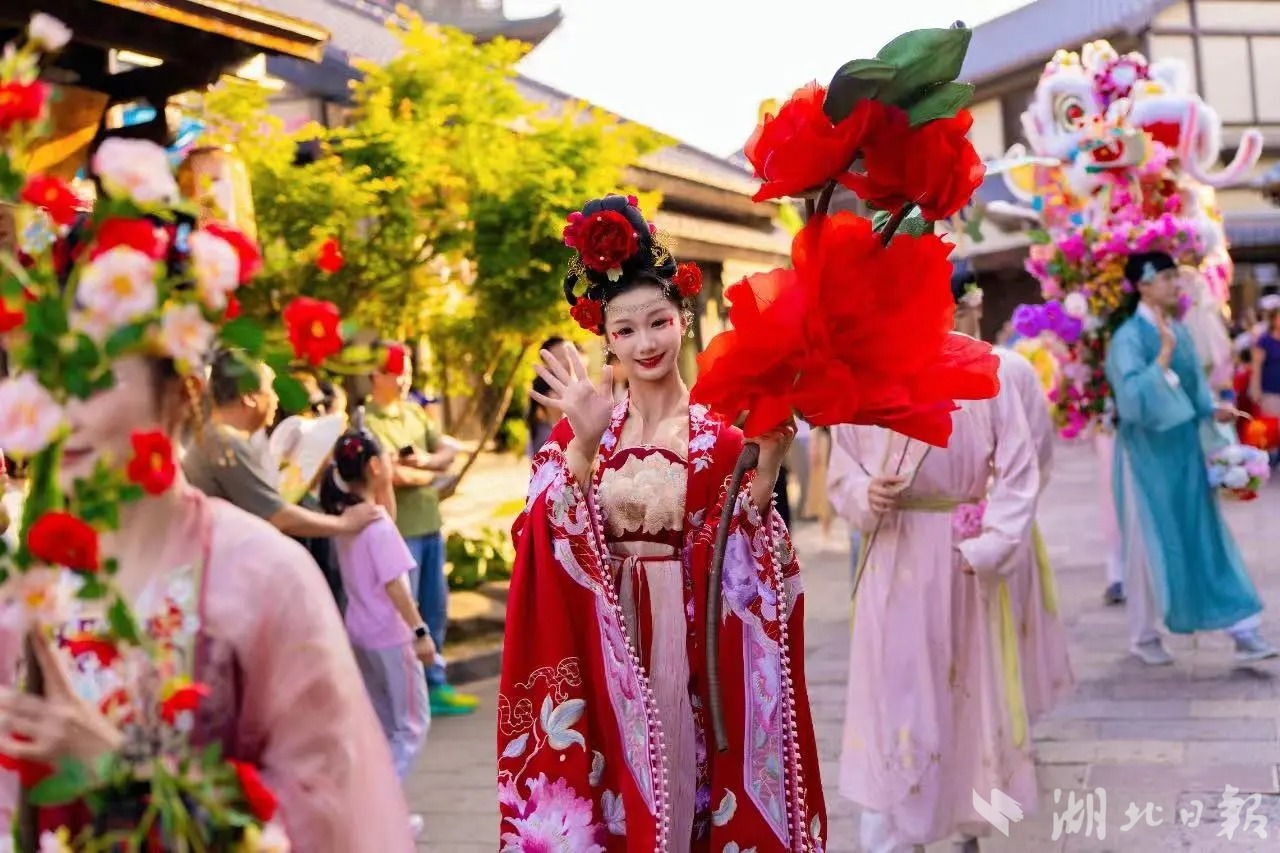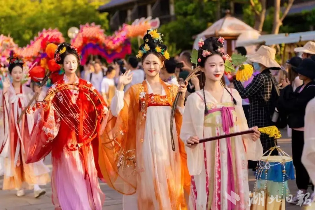 舞者们身着华丽服饰,以优美的舞姿诠释传统文化,为节日增添独特的韵味,让市民沉浸于国风之美中。