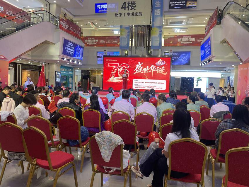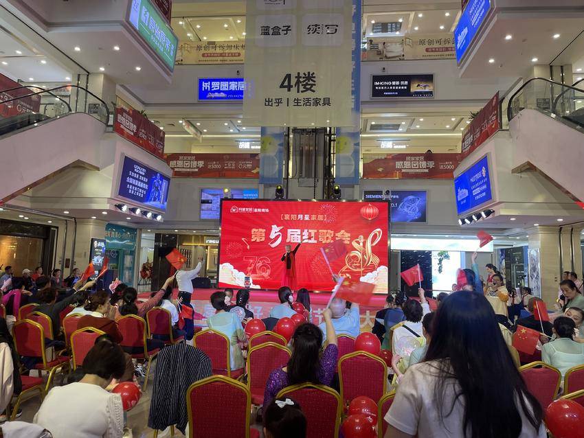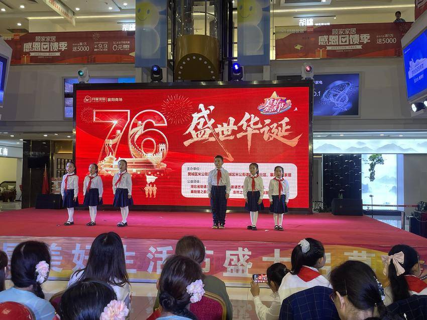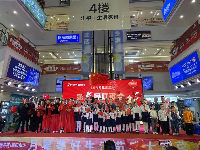 湖北日报客户端讯(通讯员李双云)为庆祝中华人民共和国成立七十六周年,讴歌党的丰功伟绩,10月1日下午3点,樊城区米公街道风华路社区联合泛悦商圈区域性综合党委,携手襄阳月星家居、湖北省少儿朗诵艺术团、浩然之声合唱团、襄阳楚之韵艺术团及辖区居民,共同举办了以“唱响红歌颂党恩,凝心聚力谱新篇”为主题的国庆庆典活动。