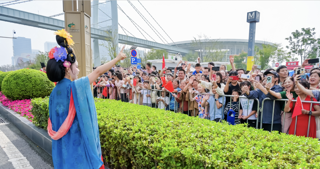 现场,身着各式服装的游客与花车方阵合影。华中科技大学教授陈鹤为花车巡游点赞:“科技与人文齐飞,未来与传统融合,锦绣湖北正以花车的形式,向世界展示湖北的文旅魅力与文化自信,加快打造世界知名文化旅游目的地。”