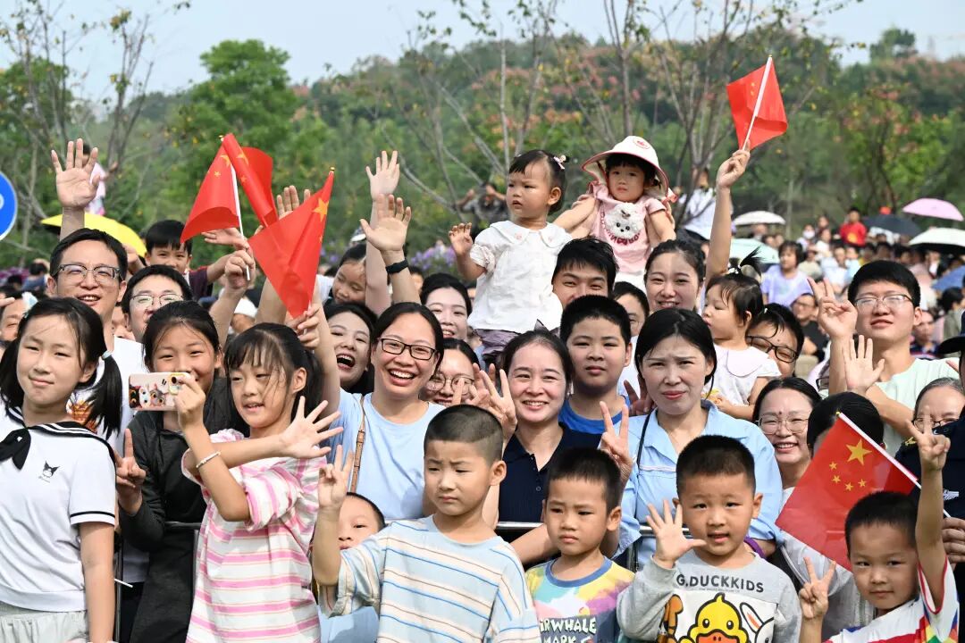 “动漫萌宠”主题花车方阵中,蒜鸟家族、黑神话悟空等动漫角色与80名萌娃组成“国漫COS天团”,与游客挥手互动。小朋友们蹦着喊:“蒜鸟!蒜鸟!都不容易!”