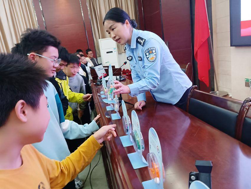 活动中,米庄派出所民警通过播放宣传片、发放宣传资料、宣讲案例、互动问答等方式,向现场师生普及反电诈、防溺水、交通安全、反对校园霸凌等方面的法律知识,引导学生要知法、学法、懂法、守法。民警与禁毒社工通过PPT、仿真毒品模型向同学们讲解了毒品的种类、危害以及防范知识,强调毒品不仅严重损害身心健康,还会破坏家庭幸福和社会稳定,告诫师生认清毒品真面目,警惕伪装成“奶茶”“巧克力”“电子烟油”的新型毒品,不相信“无害”“提神”“减肥”的谎言,牢记“凡是不明来源的食品、饮品,坚决不碰”。