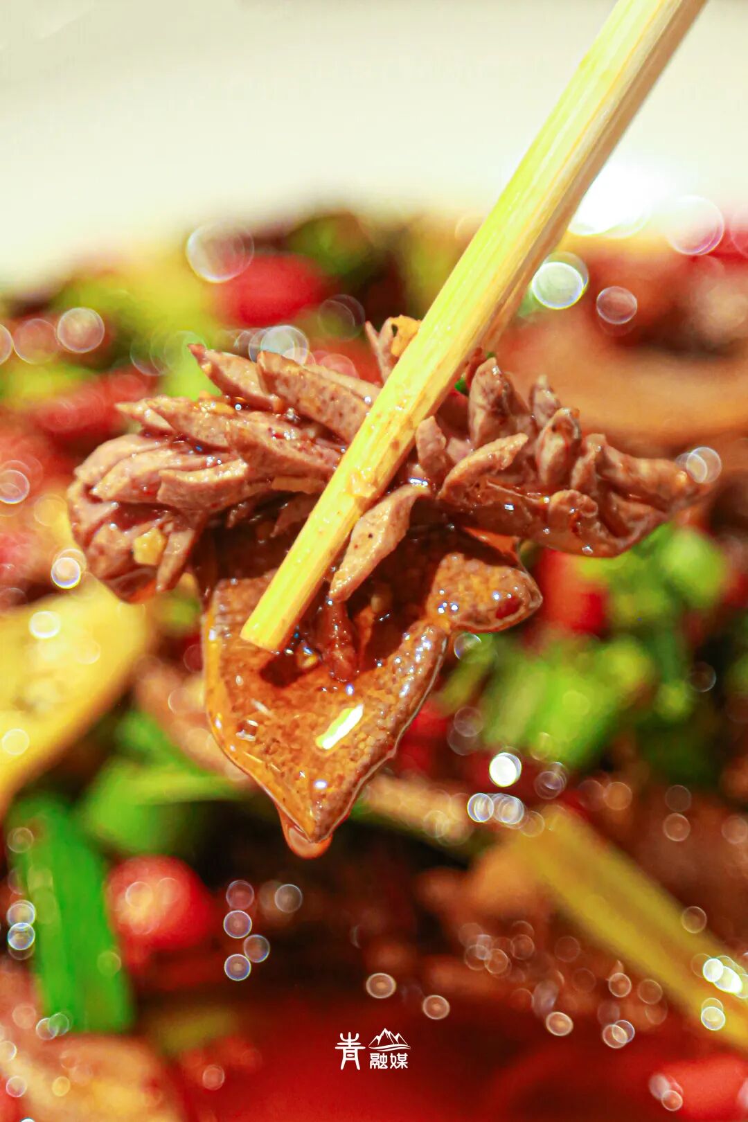 剁馍蘸上秘制辣酱,一口香过一口,想起来小时候上学过早的那种味道。肝腰合炒腰花切花刀,刀工精湛,咬一口特别脆嫩,猪肝香醇味美,嫩度刚好。用多种辣椒、花椒调味,芹菜打底,一点吃不出腥臊气,反而是内脏特有的醇香和麻辣交织在一起,特别有食欲。