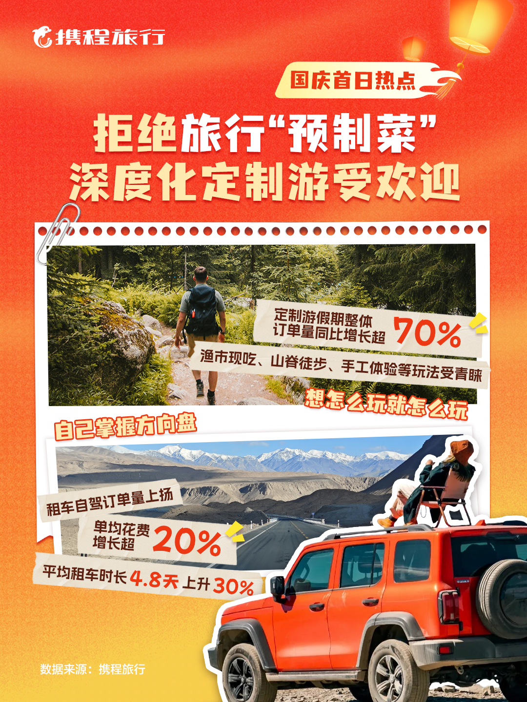 去哪儿平台数据显示,从平台10月1日用户入住的酒店城市来看,全国Top10热门目的地是北京、上海、重庆、南京、成都、杭州、长沙、青岛、西安、武汉。去哪儿旅行大数据研究院研究员蔡木子分析,今年国庆、中秋双节连休,假期天数比去年多一天,出游与阖家团圆需求叠加,家庭多人出游占比增幅明显,助推总体出行量快速增长,预计今年国庆中秋假期整体旅游热度将超以往。此外,机票价格从10月2日起将有明显下降,10月4日达到相对低谷,大家可以考虑错峰出游。