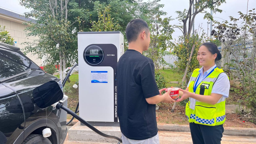最受关注的新能源电车快充区域也已经在10月1日正式上线了。“手机扫码,30分钟就能充电80%,等待充电期间刚好能够享受按摩椅服务,一举两得。”工作人员认真介绍道。服务驿站还配备服务专员,提供充电指引与操作服务,尽显便民利民之意。