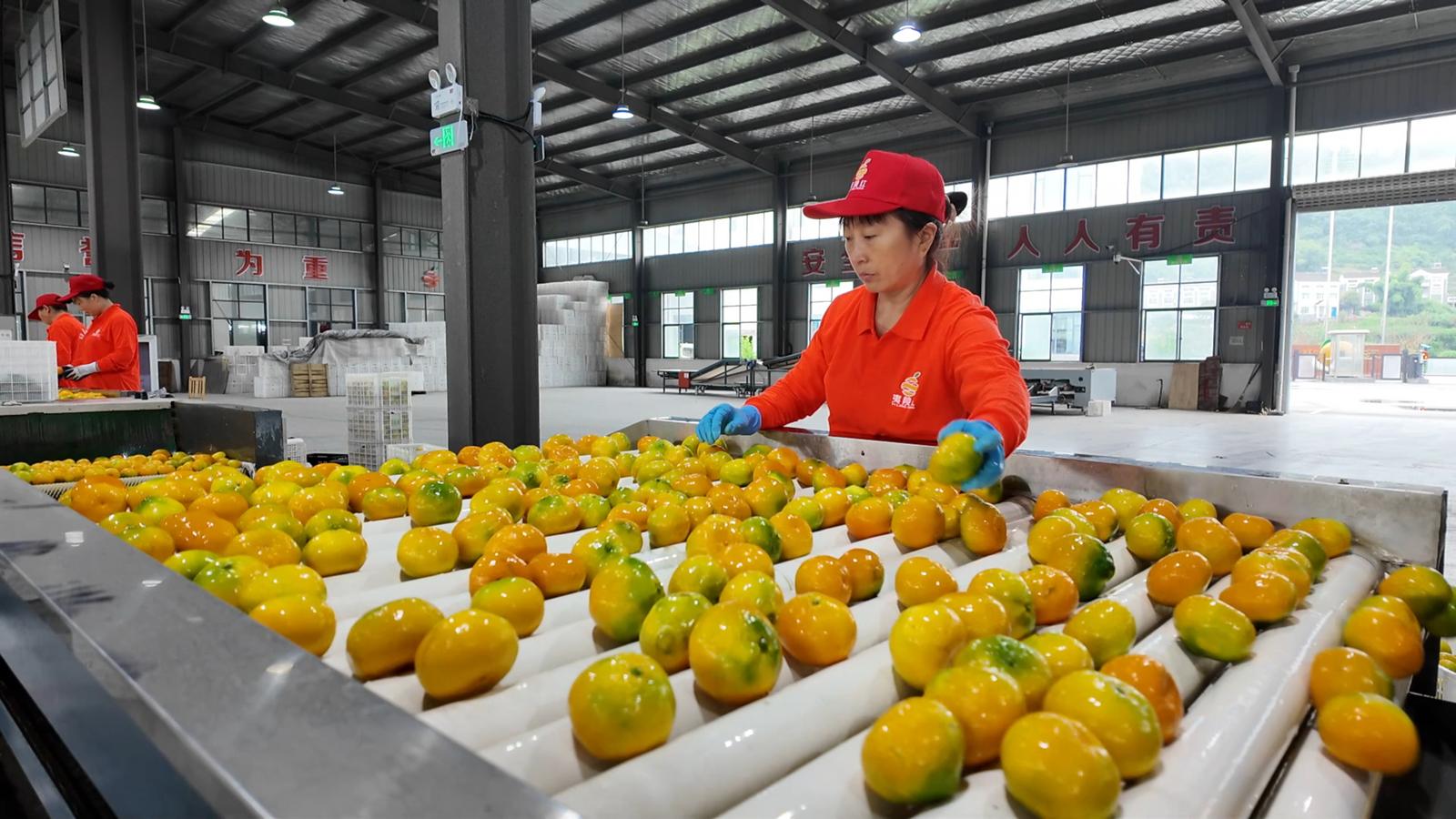 湖北日报客户端讯(通讯员周重雨、周建林)10月1日,在宜昌市夷陵区小溪塔街道官庄村,夷陵红生态农业开发有限公司的加工车间内,分选线高速运转,金黄饱满的蜜橘经过清洗、烘干、分级后装箱,即将运往俄罗斯、马来西亚等国。