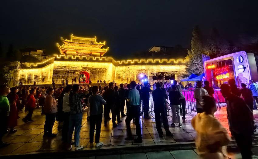湖北日报客户端讯(通讯员肖天胜、雷玲玲)10月3日,“欧卡擂台·蒲圻古城频道”老歌欢唱直播秀拉开帷幕,这座古城门首次化身巨型露天音乐厅,融合多种数字技术,将青砖黛瓦变为光影画布,为游客呈现“声光电+历史”的沉浸式盛宴。