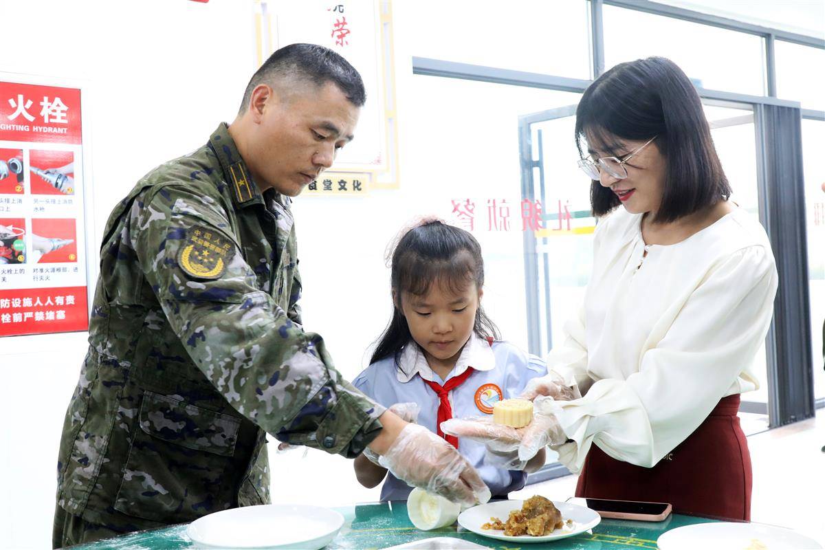 10月5日,武警荆门支队官兵与来队家属一起制作独具特色的“军营月饼”,共同迎接中秋佳节,分享节日的喜悦。