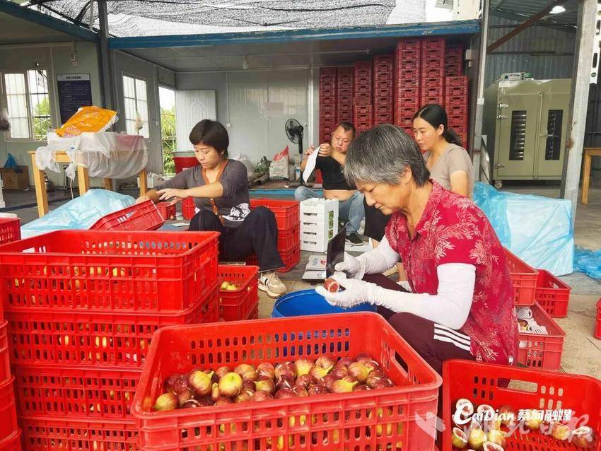 在分拣区,村民们正忙着将刚采摘的无花果分拣归类:品相好的鲜果会被精心装箱,运往水果批发市场,市场价约15元/斤;剩下的果实则会经过高压冲洗,送入烘干房——经过16小时的高温烘烤,400斤新鲜无花果能制成40斤果干,装袋后成为可随身携带的零食。