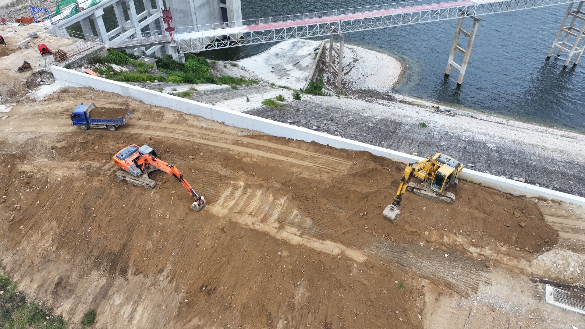 日前,记者在张家咀水库除险加固工程施工项目建设现场看到,大型机械正在进行坝面平整,工人师傅们在进行附属设施建设,现场一派繁忙有序的建设景象。