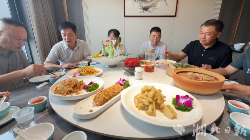 除家庭聚餐外,婚庆喜宴也在双节期间迎来高峰。各餐饮企业后厨忙碌有序,以汈汊湖螃蟹、九孔莲藕、莲子米等本地特色食材为原料制作的菜肴,经过厨师的匠心烹制,化身为一道道极具地方风味的佳肴,让食客们赞不绝口。