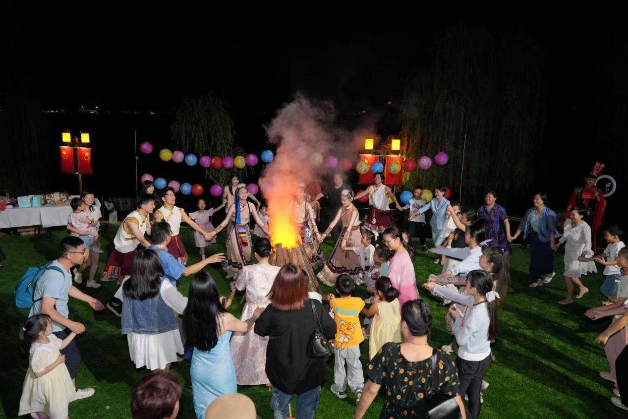 篝火四周,来宾们簇拥着围成圆圈,在领舞的邀请下,素不相识的游客们纷纷起身,手挽手围成同心圆。在律动感超强的伴奏下,大家踏着自由的舞步,身影在火光中交错。“虽然彼此都不认识,但牵着手的瞬间,感觉特别温暖。”大学生张令笑着说,她的脸颊被火光映得通红。