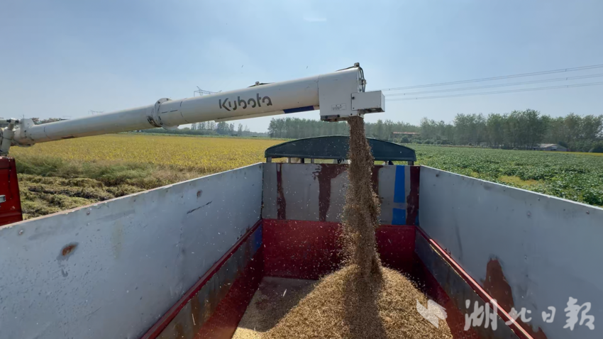湖北日报客户端讯(通讯员李刊)金秋时节,汉川市分水镇的60亩黑米水稻迎来大丰收。广袤田野上稻浪翻滚,农机手正驾驶收割机穿梭其间。随着机器轰鸣,饱满稻穗经脱粒,清选后,颗粒圆润的“华墨香”稻谷顺势落入收割车斗,再由收割机转入运输车仓——这标志着该品种在汉川试种成功。