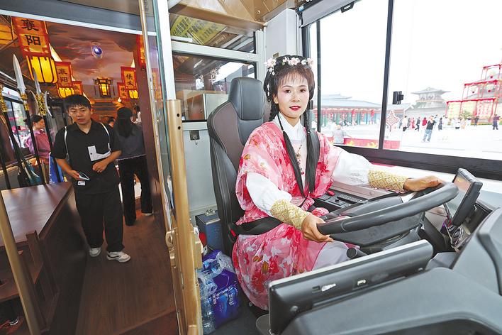 10月4日,花车返回襄阳后,与“侠义襄阳主题公交车”组成“侠义车队”展开全域巡游,所到之处引来众多游客热情“追星”。