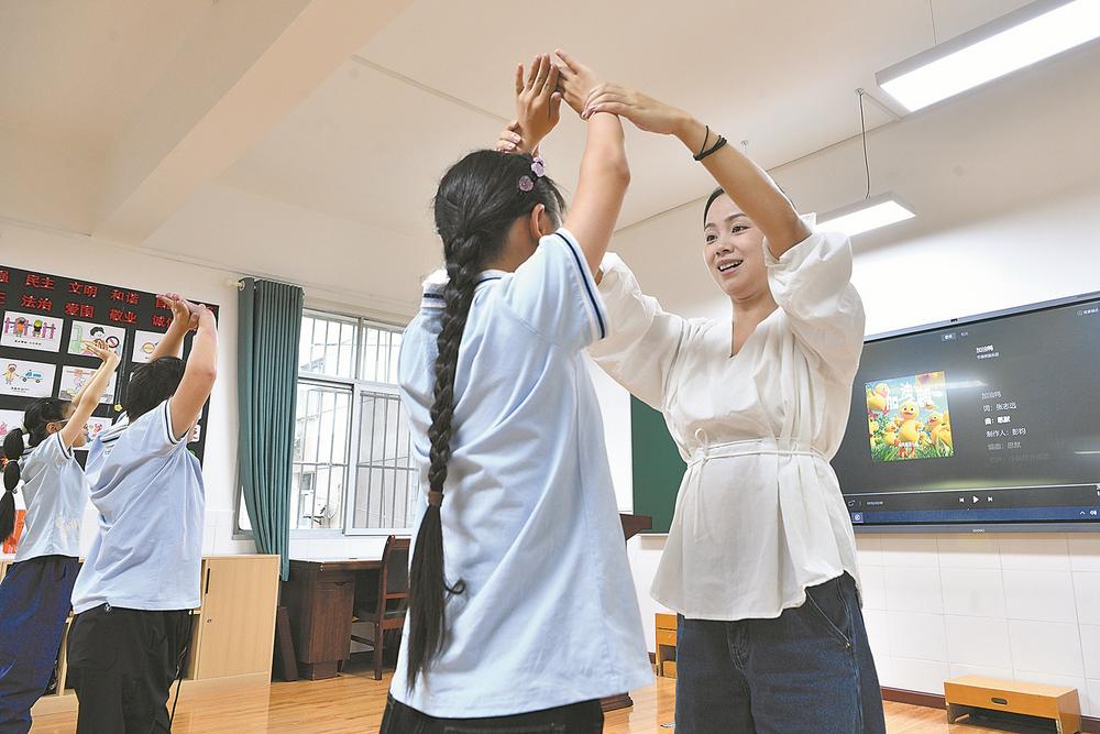 近日,在保康县特殊教育学校,教师庄旭为学生们上舞蹈课。8年来,庄旭以坚定的教育信念践行“一个也不能少”的初心,在课堂与送教路上奔走,让教育的阳光照进每一个特殊孩子的心灵,为山区特殊儿童撑起一片自由绽放的天空。