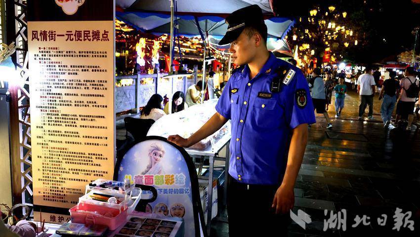 “您好,请您把摊位摆到黄线内,不要出线挤占人行道影响行人通行。”10月6日晚,在宣恩县城民族风情街、丹峰贡水龙城广场等人流量最多的景点,一群身着蓝色城管制服的城管队员们穿梭在茫茫人潮中,对一元摊、机动车辆进行有序规范摆放整理......这一幕,正是宣恩县“城管蓝”在国庆、中秋“双节”期间用实际行动织就城市秩序网,成为节日最温暖靓丽风景。