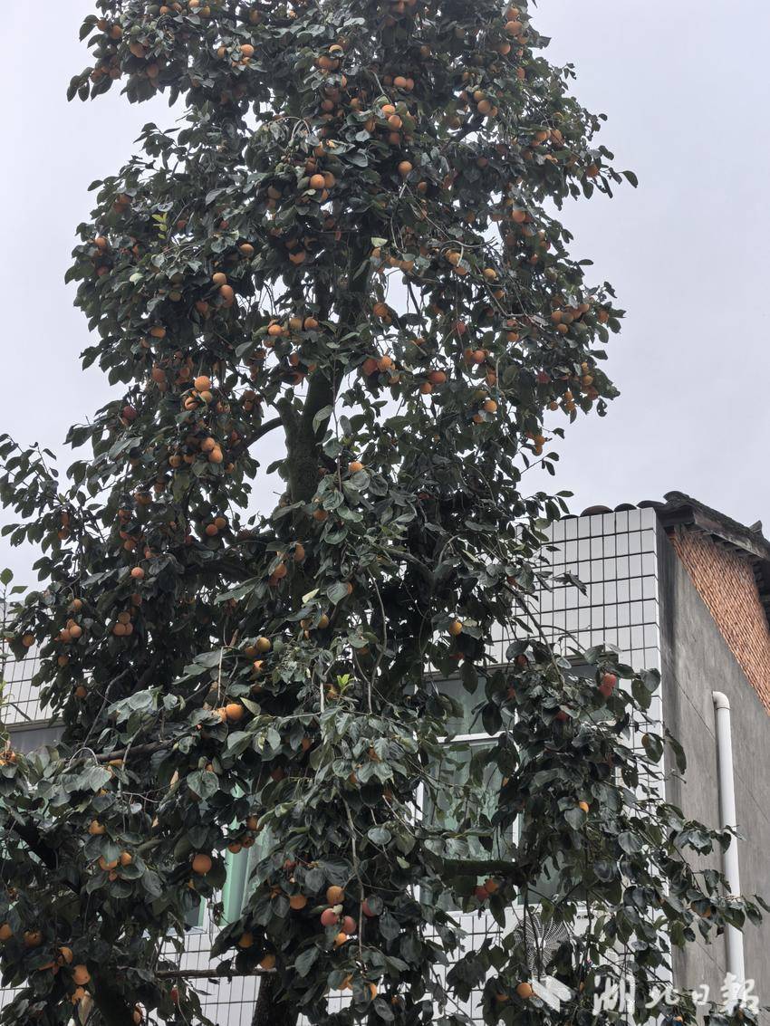 柿子高挂,点亮秋日的老屋。在明家梁村坡上的几户老宅旁,柿子树高大的枝丫如臂膀般伸向天空,挂满了一盏盏“小灯笼”。它们越过斑驳的木窗,与历经风雨的屋脊默默对望,用最饱满的橙红,温暖了老屋的秋天,也诉说着年年岁岁的守护。