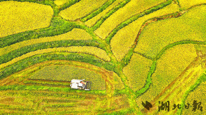 咸丰县坪坝营镇土司坝村集中连片的稻田进入收获季。