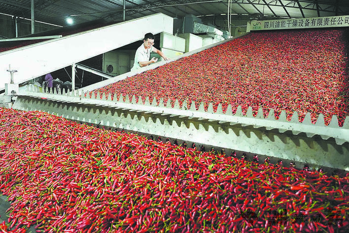 咸丰县合胜农业专业合作社社员在烘烤辣椒。