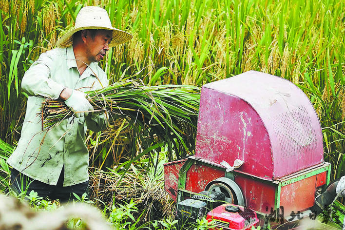 咸丰县坪坝营镇土司坝村村民在抢收水稻。