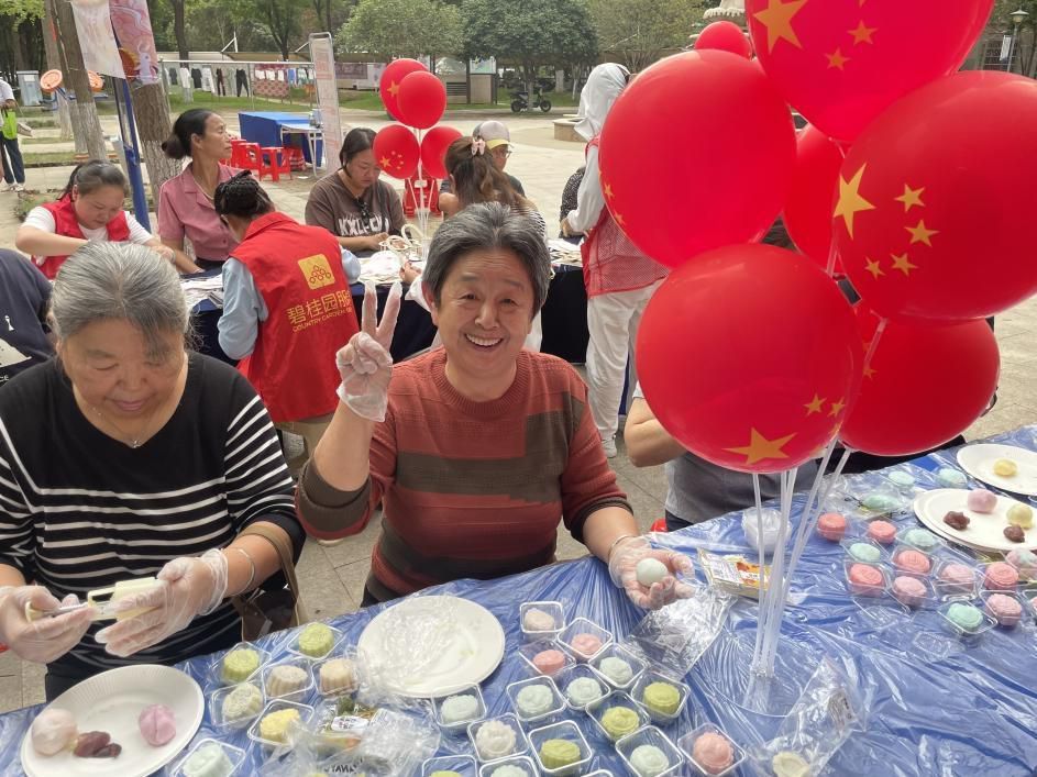 在张家墩社区新时代文明实践站的“我们的节日——月映家国情 邻里乐相聚”主题中秋邻里喜乐会上,社区青年志愿者带领大家学习传统礼仪,解读中秋习俗与经典典故。“手工小灯笼制作区”“冰皮月饼手作区”热闹非凡,大家兴趣十足,学得认真,做得仔细。