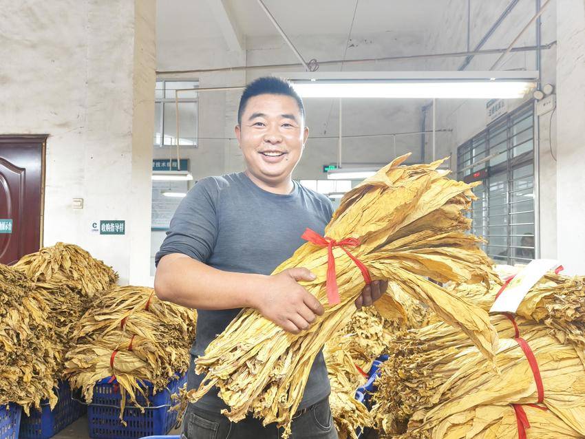 9月29日,在保康县烟草专卖局(营销部)龙坪烟叶收购站,一派繁忙热闹的景象:金黄的烟叶整齐堆放在收购区,莲花村烟农周涛抱着分级好的烟叶正在有序过磅,脸上洋溢着丰收的喜悦。(湖北日报客户端讯通讯员文英 罗明伟)