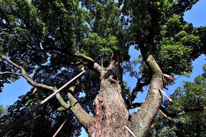 提及古树的“过往”,王怀涛回忆:“上世纪70年代,因小孩玩火不慎引发火灾,香樟树损毁严重。当时全村百姓齐心救火,最终保住了古树,它也奇迹般存活下来。”
